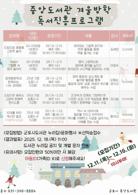 [»çȸ] ±ºÆ÷½Ã Áß¾Óµµ¼­°ü, °Ü¿ï¹æÇÐ µ¶¼­ÁøÈïÇÁ·Î±×·¥ ¿î¿µ |2025. 12.05
