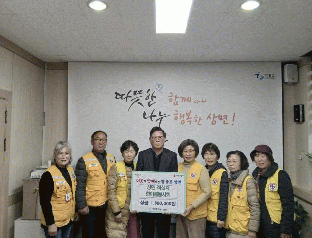[NWS¹æ¼Û=Çѽ¸ñ ±âÀÚ]´ëÇÑÀû½ÊÀÚ»ç »ó¸é ÇѾƸ§ºÀ»çȸ´Â 16ÀÏ ÇàÁ¤º¹Áö¼¾Å͸¦ ¹æ¹®ÇØ ¼º±Ý 100¸¸¿øÀ» ±âŹÇß´Ù. ÇѾƸ§ºÀ»çȸ´Â Æò¼Ò Áö¿ª ÁÖ¹ÎÀ» À§ÇÑ ºÀ»çȰµ¿°ú ³ª´® ½Çõ¿¡ Âü¿©ÇØ ¿Â ´Üü·Î, À̹ø¿¡µµ ȸ¿øµéÀÇ ¶æ¿¡ µû¶ó ¼º±ÝÀ» ¡¦