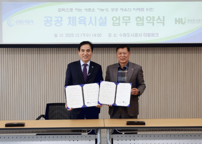 [NWS¹æ¼Û=Çѽ¸ñ ±âÀÚ]È­¼ºµµ½Ã°ø»ç´Â 12¿ù 17ÀÏ ¿ÀÈÄ 2½Ã, ¼ö¿øµµ½Ã°ø»ç ´õÇÔÆÄÅ© 3Ãþ¿¡¼­ ¼ö¿øµµ½Ã°ø»ç¿Í ÇÔ²² °ø°ø ¼ö¿µ½Ã¼³ °­»ç¿î¿µ ¾ÈÁ¤È­¸¦ À§ÇÑ '°ø°ø ¼ö¿µ½Ã¼³ ÇùÀÇü ¾÷¹«Çù¾à(MOU)'À» ü°áÇß´Ù°í ¹àÇû´Ù. À̹ø Çù¾àÀº »ýȰü¡¦