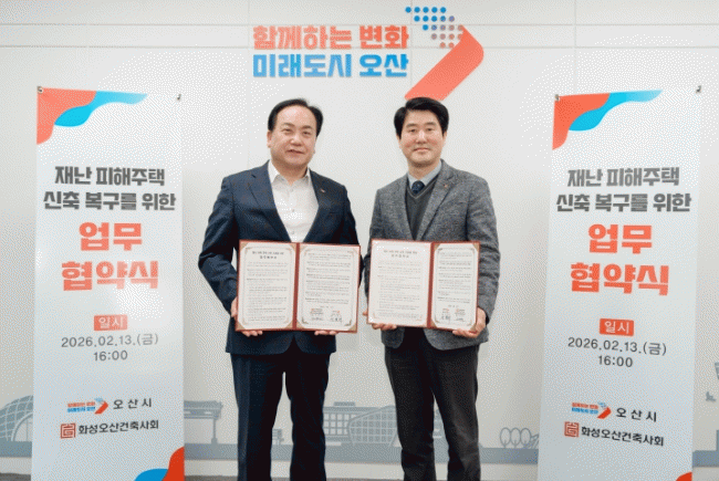 [»çȸ] ¿À»ê½Ã-È­¼º¿À»ê°ÇÃà»çȸ, ¡®Àç³­ ÇÇÇØÁÖÅà ½ÅÃà º¹±¸¸¦ À§ÇÑ ¾÷¹«Çù¾à¡¯ ü°á |2026. 02.14