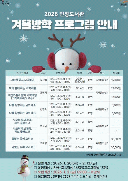 [»çȸ] °Ü¿ï¹æÇÐÀÌ ´õ Áñ°Å¿öÁø´Ù! ±¸¸®½Ã µµ¼­°ü, dz¼ºÇÑ °Ü¿ï¹æÇРƯ°­ ¿î¿µ |2025. 12.19