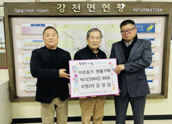 [NWS¹æ¼Û=Çѽ¸ñ ±âÀÚ]°­Ãµ¸é ºÎÆò2¸®¿¡ °ÅÁÖÇÏ´Â ±è¼º¼· ¾¾°¡ Áö³­ 18ÀÏ °­Ãµ¸é ÇàÁ¤º¹Áö¼¾Å͸¦ ¹æ¹®ÇÏ¿© °ü³» ¾î·Á¿î ÀÌ¿ô¿¡°Ô Àü´ÞÇØ ´Þ¶ó¸ç ¹é¹Ì(10kg) 60Æ÷¸¦ °­Ãµ¸é¿¡ Àü´ÞÇÏ¿© Áö¿ª»çȸÀÇ ±Í°¨ÀÌ µÇ°í ÀÖ´Ù. ±è¼º¼· ¾¾´Â Æò¼Ò ÁÖ¡¦