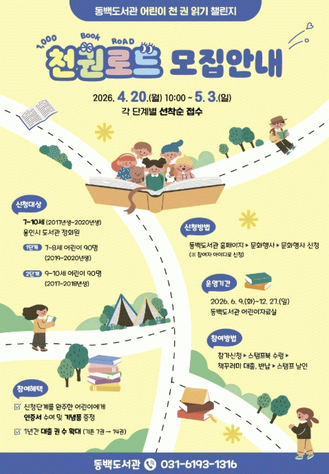 [»çȸ] ¿ëÀÎÆ¯·Ê½Ã µ¿¹éµµ¼­°ü, '¾î¸°ÀÌ Ãµ ±Ç Àбâ 縰Áö' Âü¿©ÀÚ ¸ðÁý |2026. 04.20