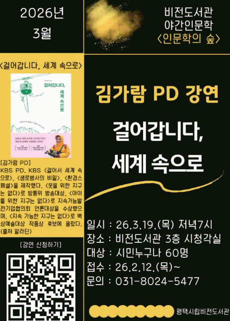[»çȸ] ÆòÅýà ºñÀüµµ¼­°ü, 3¿ù ¾ß°£ Àι®ÇÐ °­Á |2026. 02.13