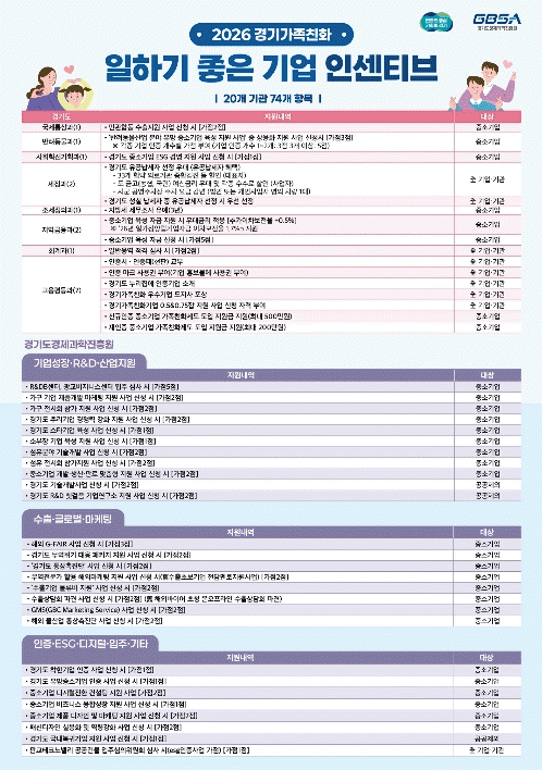 [»çȸ] °æ±âµµ, 2026³â '°¡Á·Ä£È­ ÀÏÇϱâ ÁÁÀº ±â¾÷' ÀÎÁõ Âü¿© ±â¾÷ ¸ðÁý |2026. 04.03