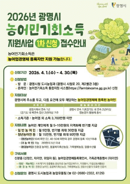 [»çȸ] ±¤¸í½Ã "2026³â ³ó¾î¹Î ±âȸ¼Òµæ 1Â÷ ½ÅûÇϼ¼¿ä" |2026. 03.18