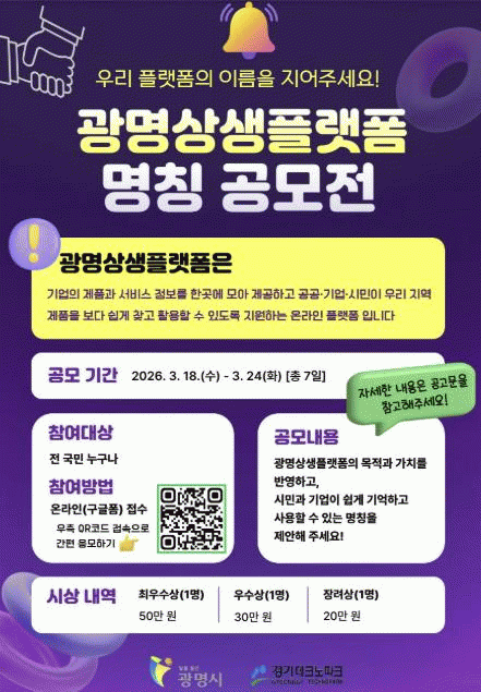 [»çȸ] ±¤¸í½Ã, '±¤¸í»ó»ýÇ÷§Æû' »õ À̸§ ã´Â´Ù¡¦ Àü ±¹¹Î ¸íĪ °ø¸ð |2026. 03.18