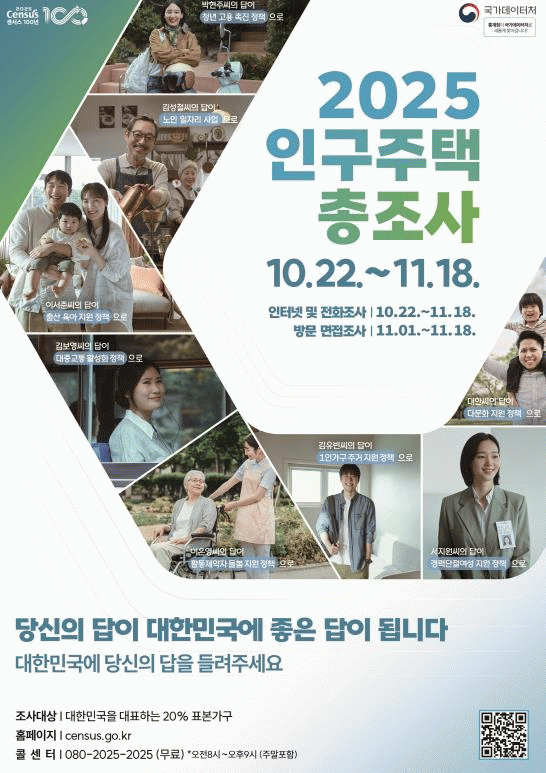 [NWS¹æ¼Û=Çѽ¸ñ ±âÀÚ]±¹°¡µ¥ÀÌÅÍó(±¸ Åë°èû)°¡ ÁÖ°üÇϰí Àü±¹ ÁöÀÚü°¡ ½Ç½ÃÇÏ´Â'2025³â Àα¸ÁÖÅÃÃÑÁ¶»ç'¸¦ 10. 22.ºÎÅÍ 11. 18.±îÁö ½Ç½ÃÇÑ´Ù. Àα¸ÁÖÅÃÃÑÁ¶»ç´Â Åë°è¹ý ½ÃÇà·É Á¦2Á¶ÀÇ 4, Àα¸ÁÖÅÃÃÑÁ¶»ç ±ÔÄ¢¿¡ µû¶ó 5³âÁÖ±â(³¡ÀÚ¡¦