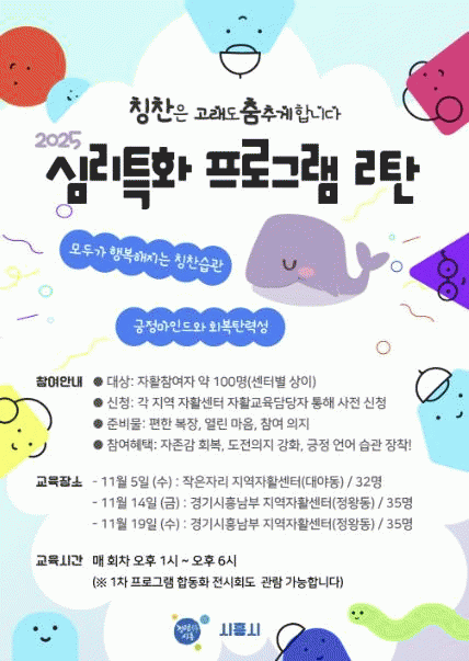 [»çȸ] ½ÃÈï½Ã, ÀÚȰÂü¿©ÀÚ ´ë»ó '½É¸®Æ¯È­ ÇÁ·Î±×·¥' 2ź ÁøÇà |2025. 11.06