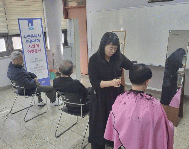[NWS¹æ¼Û=Çѽ¸ñ ±âÀÚ]¼ö¿ø½Ã ¿µÅ뱸 ¸Åź3µ¿ ÁÖ°ø6´ÜÁö¿¡¼­´Â Áö³­ 18ÀÏ, ½ÃÀú½º¸ÇÀÌ Àú¼Òµæ ¾î¸£½Å°ú Àå¾ÖÀÎÀ» ´ë»óÀ¸·Î¡®»ç¶ûÀÇ ÀÌ¹ß ºÀ»ç¸¦ ÁøÇàÇϸç Áö¿ª»çȸ¿¡ µû¶æÇÑ ³ª´®À» ÀüÇß´Ù. ¡®½ÃÀú½º¸Ç¡¯Àº ¸Å´Þ ¼Â° ÁÖ È­¿äÀϸ¶´Ù ÁÖ°ø¡¦