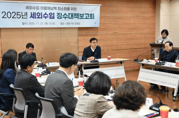 [NWS¹æ¼Û=Çѽ¸ñ ±âÀÚ]¼ö¿ø½Ã ¿µÅ뱸´Â Áö³­ 27ÀÏ ±¸Ã» »óȲ½Ç¿¡¼­ ¼¼¿Ü¼öÀÔ Â¡¼öÀ² Çâ»óÀ» À§ÇÑ¡®2025³â Áö¹æ¼¼¿Ü¼öÀÔ Â¡¼ö´ëÃ¥ º¸°íȸ¡¯¸¦ °³ÃÖÇß´Ù. º¸°íȸ´Â ¿µÅ뱸ûÀå ÁÖÀç·Î ´ë¹ÎÇù·Â°üÀ» ºñ·ÔÇØ ¿µÅ뱸 12°³ ºÎ¼­ °úÀåÀÌ Âü¼®ÇÏ¡¦