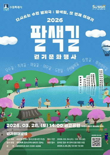 [»çȸ] ¼ö¿øÆ¯·Ê½Ã, ¡®2026 ÆÈ»ö±æ °È±â ¹®È­Çà»ç¡¯ Âü¿©ÀÚ ¸ðÁý |2026. 03.08