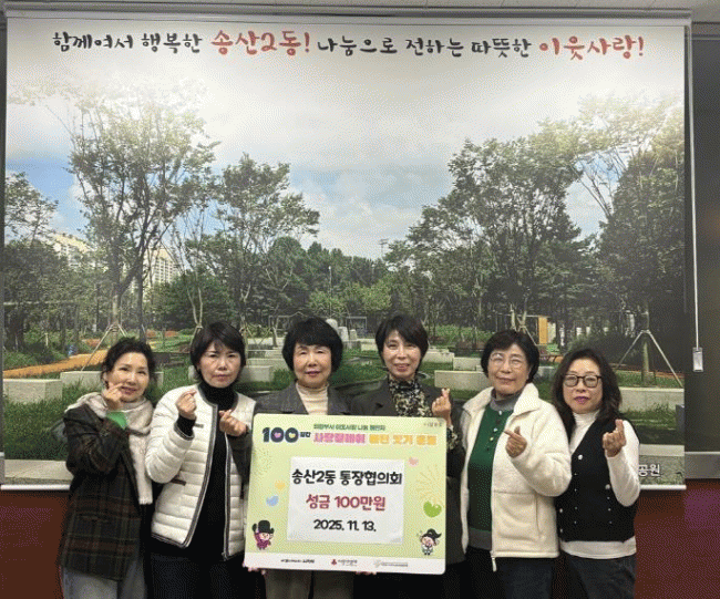 [»çȸ] ÀÇÁ¤ºÎ½Ã ¼Û»ê2µ¿ ÅëÀåÇùÀÇȸ, ¼º±Ý 100¸¸ ¿ø ±âŹ Áö¿ª ³ª´® È®»êÀÇ Ã¹ÁÖÀÚ·Î µû¶æÇÑ Ãâ¹ß ¾Ë·Á |2025. 11.14