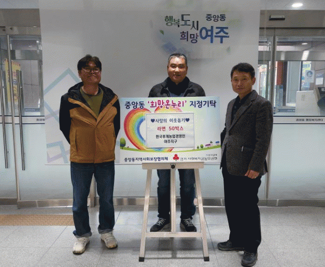 [NWS¹æ¼Û=Çѽ¸ñ ±âÀÚ]¿©Áֽà Áß¾Óµ¿ ¼ÒÀç Çѱ¹Èİè³ó¾÷°æ¿µÀÎ ¿©ÁÖÁö±¸Àº Áö³­ 24ÀÏ µ¿ ÇàÁ¤º¹Áö¼¾Å͸¦ ¹æ¹®ÇØ °ü³» Àú¼Òµæ Ãë¾à°èÃþÀ» À§ÇÑ ¶ó¸é 50¹Ú½º¸¦ ±âŹÇß´Ù. Çѱ¹Èİè³ó¾÷°æ¿µÀÎÀº ¿©Áֽÿ¡¼­ ²ÙÁØÈ÷ »çȸ°øÇå Ȱµ¿À» ÆîÄ¡°í¡¦