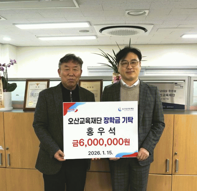 [»çȸ] ¿À»ê±³À°Àç´Ü, Áö¿ª Ãâ½Å ±â¾÷°¡ È«¿ì¼® ´ëÇ¥ ÀåÇÐ±Ý 600¸¸ ¿ø ±âŹ ¹Þ¾Æ |2026. 01.16