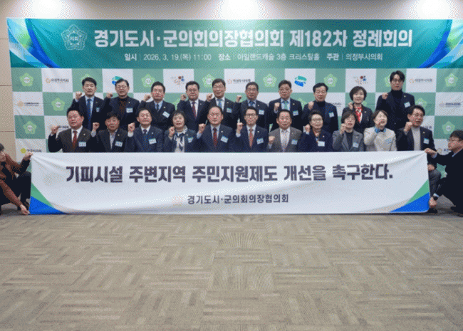 [NWS¹æ¼Û=Çѽ¸ñ ±âÀÚ]Æ÷õ½ÃÀÇȸ ÀÓÁ¾ÈÆ ÀÇÀåÀº 19ÀÏ ÀÇÁ¤ºÎ ¾ÆÀÏ·£µåij½½ Å©¸®½ºÅ»È¦¿¡¼­ ¿­¸° °æ±âµµ½Ã¡¤±ºÀÇȸÀÇÀåÇùÀÇȸ Á¦182Â÷ Á¤·ÊȸÀÇ¿¡ Âü¼®ÇØ ±âÇǽü³ ÁÖº¯Áö¿ª ÁÖ¹ÎÁö¿øÁ¦µµ °³¼±À» Ã˱¸Çß´Ù. À̹ø ȸÀÇ´Â °æ±âµµ 31°³ ½Ã¡¤¡¦