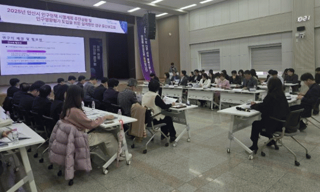 [NWS¹æ¼Û=Çѽ¸ñ ±âÀÚ]¾È»ê½Ã´Â Áö³­ 23ÀÏ ¾È»ê½Ãû ´ëȸÀǽǿ¡¼­ ¡®2025³â Àα¸Á¤Ã¥ ½ÃÇà°èȹ ÃßÁø »óȲ ¹× Àα¸¿µÇâÆò°¡ µµÀÔ¿¬±¸ Áß°£ º¸°íȸ¡¯¸¦ °³ÃÖÇß´Ù°í 24ÀÏ ¹àÇû´Ù. À̹ø º¸°íȸ¿¡´Â ¾È»ê½ÃÀÇȸ ¼Ò¼Ó ÀÇ¿ø°ú ¾È»ê½Ã Àα¸Á¤Ã¥À§¡¦