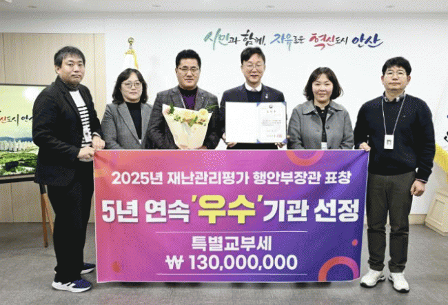 [»çȸ] ¾È»ê½Ã, ÇàÁ¤¾ÈÀüºÎ Àç³­°ü¸®Æò°¡¼­ 5³â ¿¬¼Ó ¿ì¼ö±â°ü ¼±Á¤ |2025. 12.24