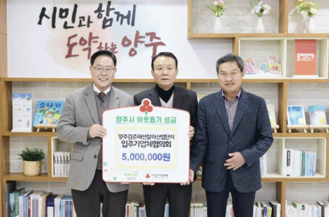 [NWS¹æ¼Û=Çѽ¸ñ ±âÀÚ]¾çÁֽð¡ Áö³­ 15ÀÏ ½ÃÀå½Ç¿¡¼­ ¾çÁÖ°ËÁØÆÐ¼ÇÄ®¶ó»ç¾÷Çùµ¿Á¶ÇÕÀ» ºñ·ÔÇÑ °ü·Ã ´Üü ¹× ±â¾÷À¸·ÎºÎÅÍ ÀÌ¿ôµ½±â ¼º±Ý°ú ¼ºÇ°À» ±âŹ¹Þ¾Ò´Ù°í ¹àÇû´Ù. À̹ø ±âŹ¿¡´Â ¾çÁÖ°ËÁØÆÐ¼ÇÄ®¶ó»ç¾÷Çùµ¿Á¶ÇÕ(Á¶ÇÕÀå À¯ÀÎÀç)°ú ¡¦