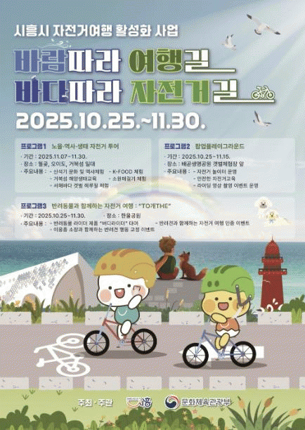 [NWS¹æ¼Û=Çѽ¸ñ ±âÀÚ]½ÃÈï½Ã´Â ¹®È­Ã¼À°°ü±¤ºÎ°¡ ÁÖ°üÇÑ ¡®2025³â Áö¿ª ÀÚÀü°Å¿©Çà Ȱ¼ºÈ­ °ø¸ð»ç¾÷¡¯¿¡ ÃÖÁ¾ ¼±Á¤µÅ ¿À´Â ¿¬¸»±îÁö ½Ã¹Î°ú °ü±¤°´ÀÌ ÇÔ²² Áñ±æ ¼ö ÀÖ´Â ½ÃÈï½Ã ÀÚÀü°Å ¿©Çà Ȱ¼ºÈ­ »ç¾÷À» ÃßÁøÇÑ´Ù. À̹ø »ç¾÷Àº ÃÑ»ç¾÷¡¦