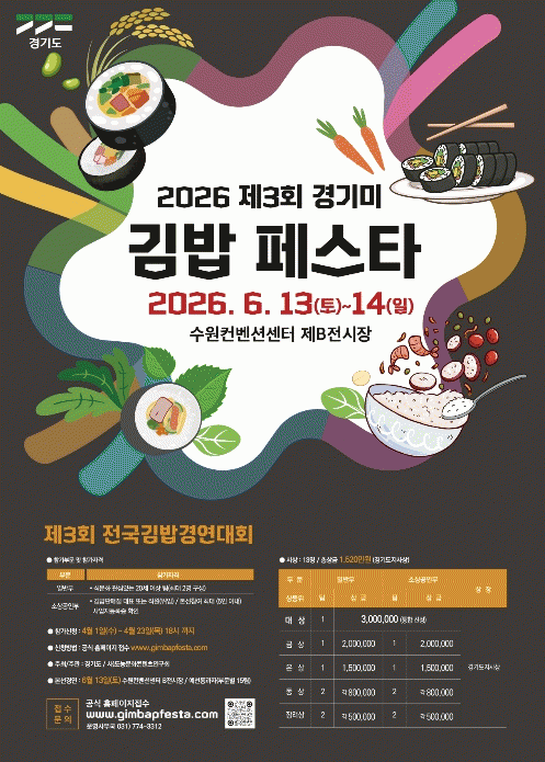 [NWS¹æ¼Û=Çѽ¸ñ ±âÀÚ]°æ±âµµ°¡ ¿ì¼ö °æ±â¹Ì ¼Òºñ¸¦ ÃËÁøÇÏ°í µ¶Ã¢ÀûÀÎ K-Ǫµå ÄÜÅÙÃ÷¸¦ ¹ß±¼Çϱâ À§ÇØ ¡®2026 Á¦3ȸ °æ±â¹Ì ±è¹ä °æ¿¬´ëȸ¡¯ Âü°¡ÀÚ¸¦ ¸ðÁýÇÑ´Ù. À̹ø ´ëȸ´Â ¿À´Â 6¿ù 13ÀϺÎÅÍ 14ÀϱîÁö ¼ö¿øÄÁº¥¼Ç¼¾ÅÍ¿¡¼­ °³ÃֵǴ ¡¦