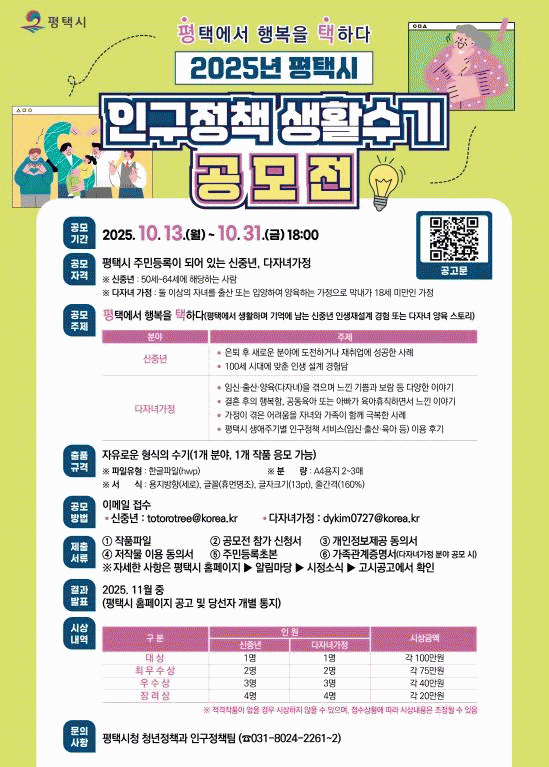 [»çȸ] ÆòÅýÃ, 2025³â Àα¸Á¤Ã¥ »ýȰ¼ö±â °ø¸ðÀü 'ÆòÅÿ¡¼­ ÇູÀ» ÅÃÇÏ´Ù' °³ÃÖ |2025. 10.17