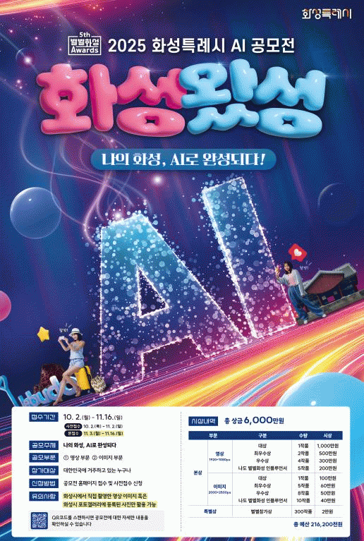 [»çȸ] È­¼ºÆ¯·Ê½Ã AI °ø¸ðÀü 'È­¼º¿Ô¼º' »çÀüÁ¢¼ö |2025. 10.17