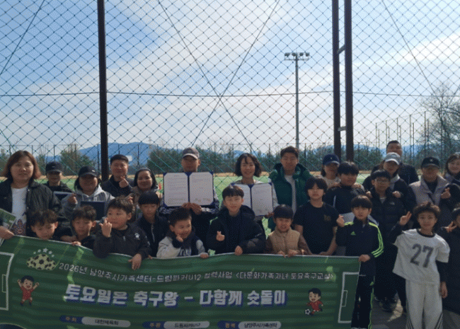 [NWS¹æ¼Û=Çѽ¸ñ ±âÀÚ]³²¾çÁֽô ÀÌ´ÞºÎÅÍ ³²¾çÁֽð¡Á·¼¾ÅͰ¡ ´ëÇÑüÀ°È¸ ÈÄ¿ø°ú ´Ù»êµ¿ ¼ÒÀç µå¸²½ÎÄ¿U12ÀÇ Çù·ÂÀ¸·Î °ü³» ´Ù¹®È­°¡Á· ¾Æµ¿À» À§ÇÑ ¡®Åä¿äÃ౸±³½Ç¡¯À» ¿î¿µÇÑ´Ù°í 19ÀÏ ¹àÇû´Ù. À̹ø »ç¾÷Àº ´Ù¹®È­°¡Á¤ ¾Æµ¿ÀÇ °Ç°­ÇÑ¡¦