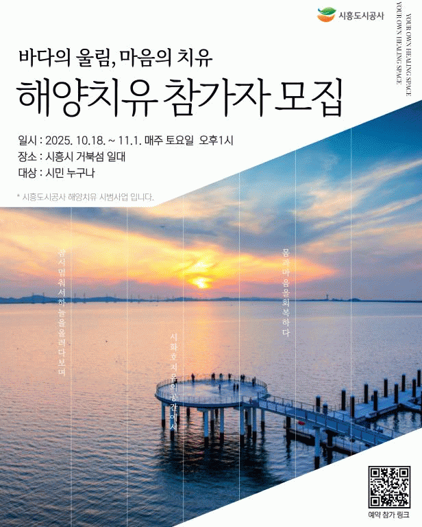 [NWS¹æ¼Û=Çѽ¸ñ ±âÀÚ]½ÃÈïµµ½Ã°ø»ç´Â ¿À´Â 10¿ù 18ÀϺÎÅÍ 11¿ù 1ÀϱîÁö 3ÁÖ°£, ¡®¹Ù´ÙÀÇ ¿ï¸², ¸¶À½ÀÇ Ä¡À¯¡¯¶õ ÁÖÁ¦·Î ÇØ¾ç Ä¡À¯ ÇÁ·Î±×·¥À» ÁøÇàÇÑ´Ù°í ¹àÇû´Ù. À̹ø ÇÁ·Î±×·¥Àº ÇØ¾çÀÚ¿øÀ» Ȱ¿ëÇÑ Ä¡À¯ ÇÁ·Î±×·¥À» ÅëÇØ ½Ã¹ÎÀÇ °Ç°­¡¦