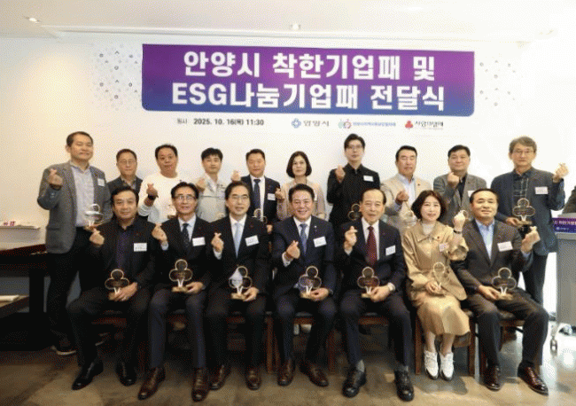 [»çȸ] ¾È¾ç½Ã, ±âºÎ ½Çõ 'ÂøÇѱâ¾÷¡¤ÀÌ¿¡½ºÁö(ESG)³ª´®±â¾÷' °¨»çÆÐ Àü´Þ |2025. 10.16