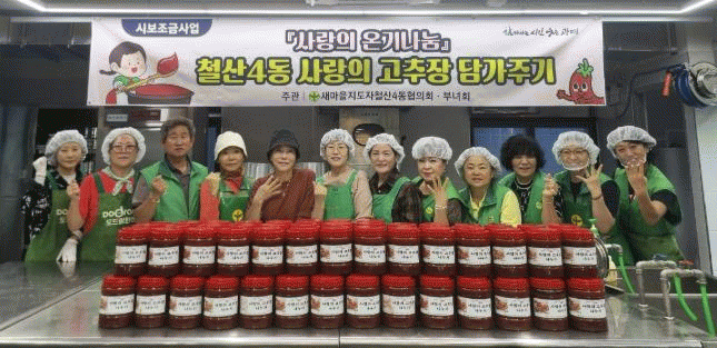 [NWS¹æ¼Û=Çѽ¸ñ ±âÀÚ]±¤¸í½Ã »õ¸¶À»ÁöµµÀÚ Ã¶»ê4µ¿ ÇùÀÇȸ¿Í »õ¸¶À»ºÎ³àȸ´Â 16ÀÏ ±¤¸í½Ã ä¿òºÎ¾ý(°øÀ¯ºÎ¾ý)¿¡¼­ ¡®»ç¶ûÀÇ °íÃßÀå ³ª´® Çà»ç¡¯¸¦ ÁøÇàÇß´Ù. À̳¯ ÇùÀÇȸ¿Í ºÎ³àȸ¿ø 10¿© ¸íÀº Á¤¼º²¯ ´ã±Ù °íÃßÀåÀ» °ü³» ÇѺθð°¡Á¤, ¡¦