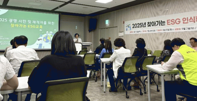 [NWS¹æ¼Û=Çѽ¸ñ ±âÀÚ]±¤¸í½Ã´Â ½Ã¹Î°ú ±â¾÷ÀÇ È¯°æ¡¤»çȸ¡¤Áö¹è±¸Á¶(ESG) ÀÎ½Ä Á¦°í¿Í ½Çõ ¿ª·® °­È­¸¦ À§ÇØ ÃßÁøÇÑ ¡®2025³â ã¾Æ°¡´Â ESG ±³À°¡¯À» Áö³­ 15ÀÏ 5ȸÂ÷ ±³À°À» ³¡À¸·Î ¸¶¹«¸®Çß´Ù. À̹ø ±³À°Àº 6¿ùºÎÅÍ 10¿ù±îÁö ÃÑ 5ȸ¡¦