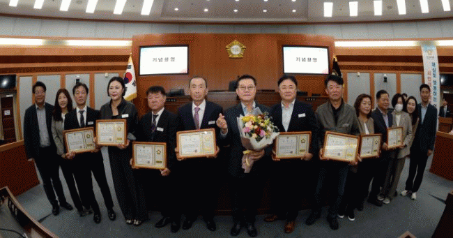 [NWS¹æ¼Û=Çѽ¸ñ ±âÀÚ]¿À»ê½ÃÀÇȸ´Â 16ÀÏ ÀÇȸ º»È¸ÀÇÀå¿¡¼­ ¡®Á¦37ȸ ¿À»ê½Ã¹ÎÀÇ ³¯¡¯À» ±â³äÇØ Áö¿ª»çȸ ¹ßÀü¿¡ ±â¿©ÇÑ ½Ã¹Î 8¸í¿¡°Ô ÀÇÀå ǥâÀ» ¼ö¿©Çß´Ù. À̳¯ ǥâ½ÄÀº ¿À»êÀÇ ¼ºÀå°ú º¯È­¸¦ À̲ø¾î ¿Â °¢ µ¿ ´ëÇ¥ ½Ã¹ÎµéÀÇ ³ë°í¸¦¡¦