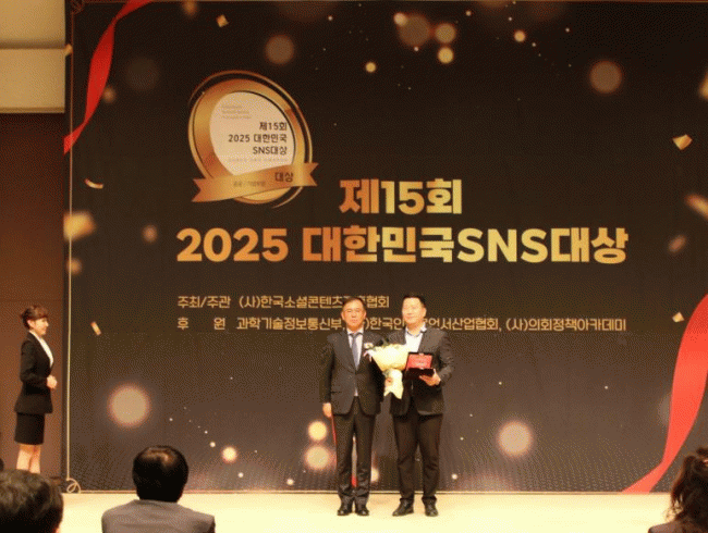 [NWS¹æ¼Û=Çѽ¸ñ ±âÀÚ]ÆòÅýð¡ ¡®Á¦15ȸ 2025 ´ëÇѹα¹ SNS ´ë»ó¡¯ ±âÃÊÁöÀÚü_½Ã ºÎ¹®¿¡¼­ ´ë»óÀ» ¹Þ¾Ò´Ù. ¡®´ëÇѹα¹ SNS ´ë»ó¡¯Àº (»ç)Çѱ¹¼Ò¼ÈÄÜÅÙÃ÷ÁøÈïÇùȸ°¡ ÁÖÃÖÇÏ°í °úÇбâ¼úÁ¤º¸Åë½ÅºÎ µîÀÌ ÈÄ¿øÇÏ´Â ±¹³» ÃÖ°í ±ÇÀ§¸¦ ÀÚ¶ûÇÏ¡¦