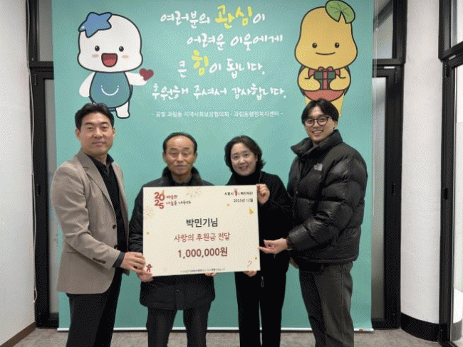 [NWS¹æ¼Û=Çѽ¸ñ ±âÀÚ]½ÃÈï½Ã °ú¸²µ¿ ÇàÁ¤º¹Áö¼¾ÅÍ´Â Áö³­ 12¿ù 16ÀϺÎÅÍ 19ÀϱîÁö ÁֹΠ¹Ú¹Î±â ¾¾, °ú¸²±³È¸, °ú¸²µ¿ Áö¿ª»çȸº¸ÀåÇùÀÇü ¹ÎÀÚ±Ù À§¿øÀåÀ¸·ÎºÎÅÍ °¢°¢ 100¸¸ ¿ø¾¿ÀÇ ÈÄ¿ø±ÝÀ» ±âŹ¹Þ¾Ò´Ù. À̵éÀº ¸Å³â ¾î·Á¿î ÀÌ¿ôÀ» µ½±â¡¦