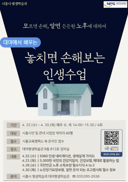 [NWS¹æ¼Û=Çѽ¸ñ ±âÀÚ]½ÃÈï½Ã´Â ÁßÀå³âÃþÀÇ ¾ÈÁ¤ÀûÀÎ ³ëÈÄ Áغñ¿Í Á¦2ÀÇ Àλý ¼³°è¸¦ Áö¿øÇϱâ À§ÇØ ´ë¾ßÆò»ýÇнÀ°ü¿¡¼­ ¡®´ë¾ß¿¡¼­ ¹è¿ì´Â ³õÄ¡¸é ¼ÕÇØ º¸´Â Àλý¼ö¾÷¡¯À» ¿î¿µÇÑ´Ù. ½ÃÈï½Ã ÁßÀå³â(40~64¼¼) Àα¸´Â ½Ã Àüü 60¸¸ Àα¸ÀÇ¡¦