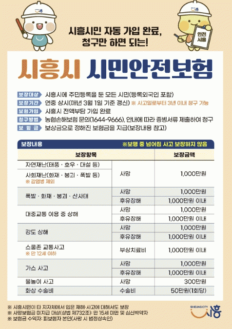 [NWS¹æ¼Û=Çѽ¸ñ ±âÀÚ]½ÃÈï½Ã´Â °¢Á¾ Àç³­°ú »ç°í·ÎºÎÅÍ ÇÇÇØ¸¦ º» ½Ã¹Î¿¡ ´ëÇØ »ýȰ ¾ÈÁ¤À» Áö¿øÇϱâ À§ÇØ ¡®½ÃÈï½Ã ½Ã¹Î¾ÈÀüº¸Ç衯À» ¿¬Áß ¿î¿µÇϰí ÀÖ´Ù. ½Ã¹Î¾ÈÀüº¸ÇèÀº ÀÚ¿¬Àç³­°ú »çȸÀç³­ µî °¢Á¾ ¿¹±âÄ¡ ¸øÇÑ »ç°í·Î ÇÇÇØ¸¦ º» ¡¦