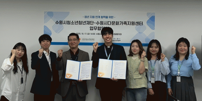 [»çȸ] ¼ö¿ø½Ãû¼Ò³âû³âÀç´Ü-¼ö¿ø½Ã´Ù¹®È­°¡Á·Áö¿ø¼¾ÅÍ »óÈ£±³·ù ¹× ¾÷¹« ¿¬°èÇù·Â Çù¾à ü°á |2025. 10.19