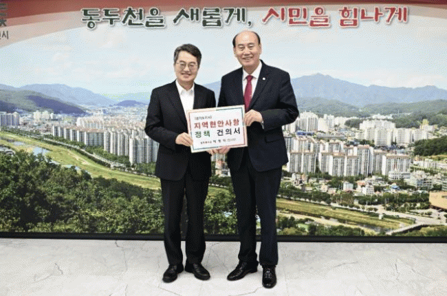 [NWS¹æ¼Û=Çѽ¸ñ ±âÀÚ]¹ÚÇü´ö µ¿µÎõ½ÃÀåÀº 10¿ù 16ÀÏ ½ÃûÀ» ¹æ¹®ÇÑ ±èµ¿¿¬ °æ±âµµÁö»ç¿¡°Ô µ¿µÎõ ¹Ì±º°ø¿©Áö Áö¿øÁ¤Ã¥°ú Ưº°Á¶Á¤±³ºÎ±Ý ¹èÁ¤ µî ÁÖ¿ä Çö¾È¿¡ ´ëÇÑ ½ÇÁúÀû Áö¿øÀ» ¿äûÇß´Ù. À̹ø ¹æ¹®Àº ±è Áö»ç°¡ °æ±âºÏºÎ Áö¿ªÀ» ¼ø¡¦