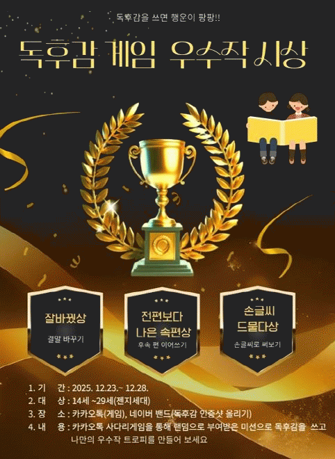 [»çȸ] ÆÄÁֽà ±³Çϵµ¼­°ü, 'Á¨Áö ¼¼´ë¸¦ À§ÇÑ µ¶Èݨ °ÔÀÓ ¿ì¼öÀÛ ½Ã»ó' ÇÁ·Î±×·¥ ¿î¿µ |2025. 12.26