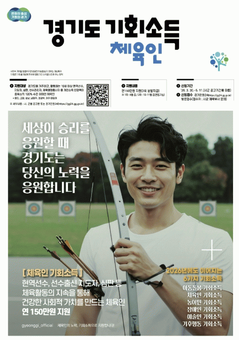 [NWS¹æ¼Û=Çѽ¸ñ ±âÀÚ]±¤Áֽô üÀ° Ȱµ¿À» ÅëÇÑ »çȸÀû °¡Ä¡ âÃâÀ» ÀÎÁ¤Çϰí üÀ°ÀÎÀÇ Áö¼ÓÀûÀΠȰµ¿À» Áö¿øÇϱâ À§ÇÑ ¡®°æ±âµµ üÀ°ÀÎ ±âȸ ¼Òµæ¡¯ Áö¿ø »ç¾÷ ½ÅûÀ» 5¿ù 11ÀϱîÁö 5ÁÖ°£ Á¢¼öÇÑ´Ù°í 8ÀÏ ¹àÇû´Ù. ½Åû ´ë»óÀº 2026³â¡¦