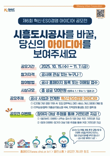 [»çȸ] ½ÃÈïµµ½Ã°ø»ç, ¡®Á¦6ȸ Çõ½Å¡¤ESG°æ¿µ ¾ÆÀ̵ð¾î °ø¸ðÀü¡¯ °³ÃÖ |2025. 10.15