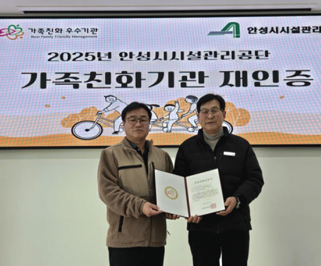 [»çȸ] ¾È¼º½Ã½Ã¼³°ü¸®°ø´Ü, ¼ºÆòµî°¡Á·ºÎ °¡Á·Ä£È­±â°ü ÀçÀÎÁõ ȹµæ |2025. 12.30
