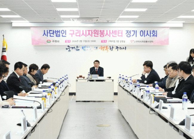 [NWS¹æ¼Û=Çѽ¸ñ ±âÀÚ]»ç´Ü¹ýÀÎ ±¸¸®½ÃÀÚ¿øºÀ»ç¼¾ÅÍ´Â 2¿ù 11ÀÏ ±¸¸®½Ãû 3Ãþ »óȲ½Ç¿¡¼­ ¼¾ÅÍ ÀÓ¿ø 19¸íÀÌ Âü¼®ÇÑ °¡¿îµ¥ 2026³â Á¤±â ÀÌ»çȸ¸¦ °³ÃÖÇß´Ù. À̳¯ ÀÌ»çȸ¿¡¼­´Â Áö³­ ÇÑ ÇØ µ¿¾ÈÀÇ ÁÖ¿ä ¼º°ú¸¦ Á¡°ËÇϰí, 2026³â ¼¼°è ÀÚ¿ø¡¦