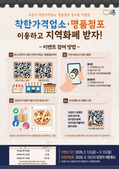 [»çȸ] ½ÃÈï½Ã ±×¸°¸¶Æ® °Å¸ðÁ¡, ¼³¸ÂÀÌ ¶ó¸é 100»óÀÚ ÈÄ¿ø |2026. 02.14