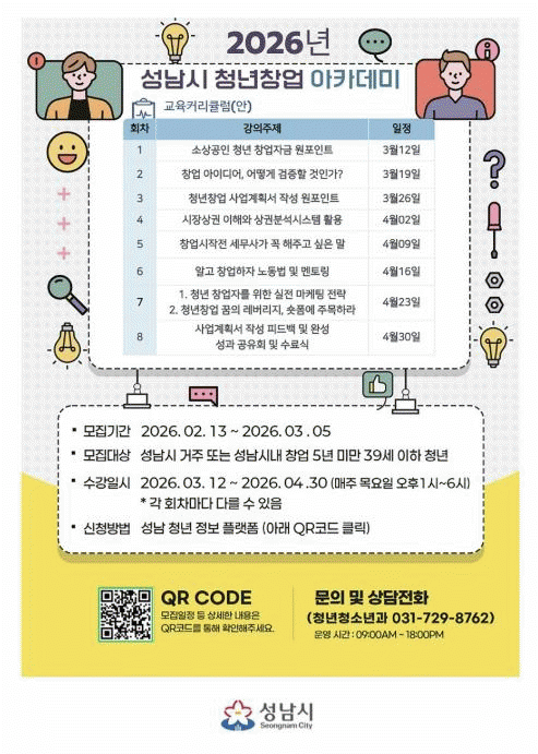 [»çȸ] ¼º³²½Ã 'û³ââ¾÷ ¾ÆÄ«µ¥¹Ì' ¹«·á ±³À°»ý 30¸í ¸ðÁý |2026. 02.20