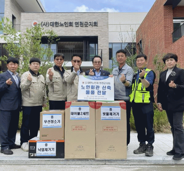 [NWS¹æ¼Û=Çѽ¸ñ ±âÀÚ]´ëÇѳëÀÎȸ ¿¬Ãµ±ºÁöȸ´Â ȯ°æ±âÃʽü³ ¾÷üÀÎ ¢ß½ÅÁøÀ¯Áö°Ç¼³, ¢ß¾ÆÀÌÁ¦ÀÌ¿£¼Ö, ¢ßµµÈ­¿£Áö´Ï¾î¸µÀÌ ¿¬Ãµ±º ³ëÀÎȸ°ü °³°ü ±â³ä ÈÄ¿ø ¹°Ç°À» ±âÁõÇß´Ù°í 22ÀÏ ¹àÇû´Ù. ÀÌµé ¾÷ü´Â ³ëÀκ¹Áö Çâ»ó°ú ÄèÀûÇÑ ½Ã¼³ ¿î¡¦