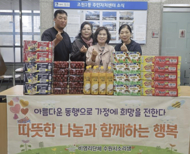 [NWS¹æ¼Û=Çѽ¸ñ ±âÀÚ]¼ö¿ø½Ã ¼Ò¸®»ùºÀ»ç´ÜÀº 13ÀÏ, Á¶¿ø1µ¿ÀÇ Ãë¾à°èÃþÀ» ´ë»óÀ¸·Î ÁغñÇÑ ½Ä·áǰ ²Ù·¯¹Ì¸¦ Á÷Á¢ Àü´ÞÇÏ´Â ³ª´® Çà»ç¸¦ ÁøÇàÇß´Ù. À̳¯ ½Ä·áǰ ²Ù·¯¹Ì´Â Á¶¿ø1µ¿ °ü³» Ȧ¸ö ¾î¸£½Å µî Ãë¾à°èÃþ 10°¡±¸¿¡ Á÷Á¢ Àü´ÞµÆÀ¸¸ç¡¦
