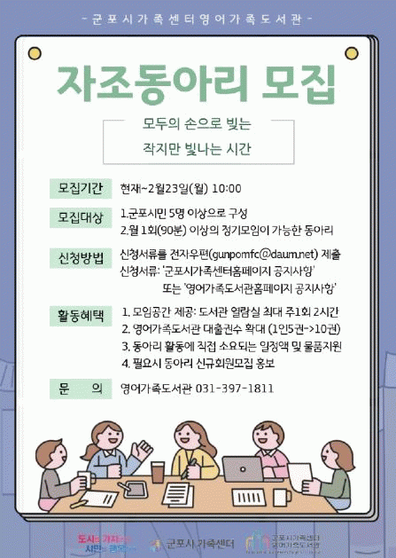 [»çȸ] ±ºÆ÷½Ã°¡Á·¼¾ÅÍ ¿µ¾î°¡Á·µµ¼­°ü, 2026³â ÀÚÁ¶µ¿¾Æ¸® ¸ðÁý |2026. 02.11