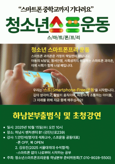 [»çȸ] ¡®½º¸¶Æ®Æù ÁßÇб³±îÁö ±â´Ù·Á¿ä¡¯Ã»¼Ò³â ½ºÇÁ¿îµ¿ Çϳ²º»ºÎ Ãâ¹ü½Ä ¿¹°í |2025. 10.13